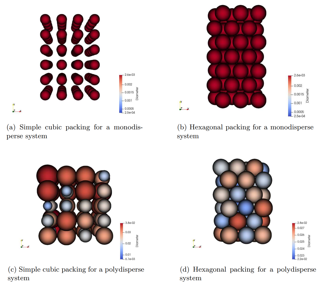 Initial lattice distribution (DEM solids only) Particles are initially seeding on a lattice, which can be cubic or hexagonal arrangement. Hexagonal arrangement can typically achieve higher packing density than cubic arrangement.