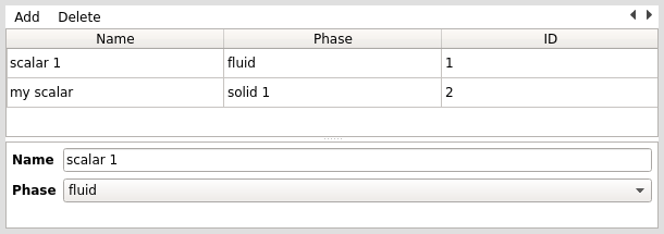 By default, scalars are named “Scalar ID” where ID is the index of the scalar. It is recommended to edit the Name to something more descriptive. However, the scalar name is local to the GUI and not provided to the solver; in the solver and UDFs the Scalar is only referred to by Index.