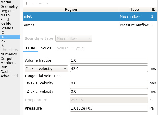 Select regiondialog, select “Mass Inflow” from theBoundary typedrop-down menuSelect the “inlet” region and click