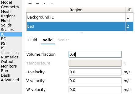 Select the solid (named previously as “solid”) sub-pane and enter a volume fraction of