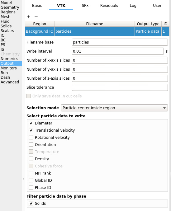 VTKsub-paneSelect “Particle Data” from the ‘Output type’ drop-down menu.