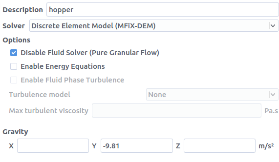 Namefield (“solids”)Keep the model as “Discrete Element Model (MFiX-DEM)”)