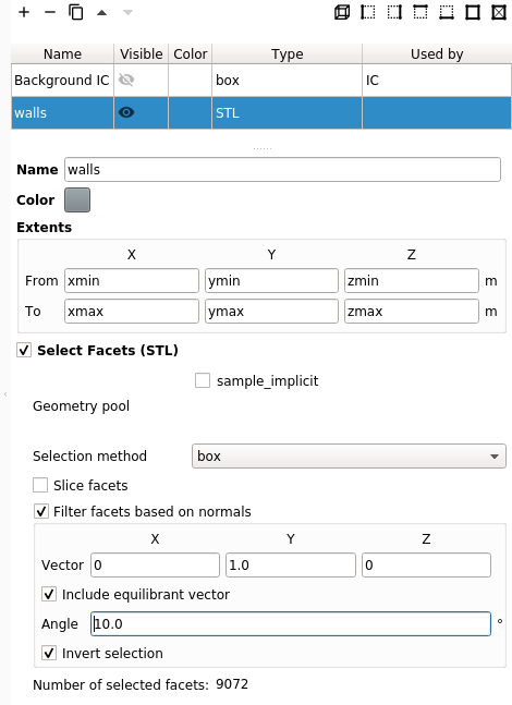 Select facets (STL)checkbox to turn the region into a STL region. The facets of the hopper should now be selected.