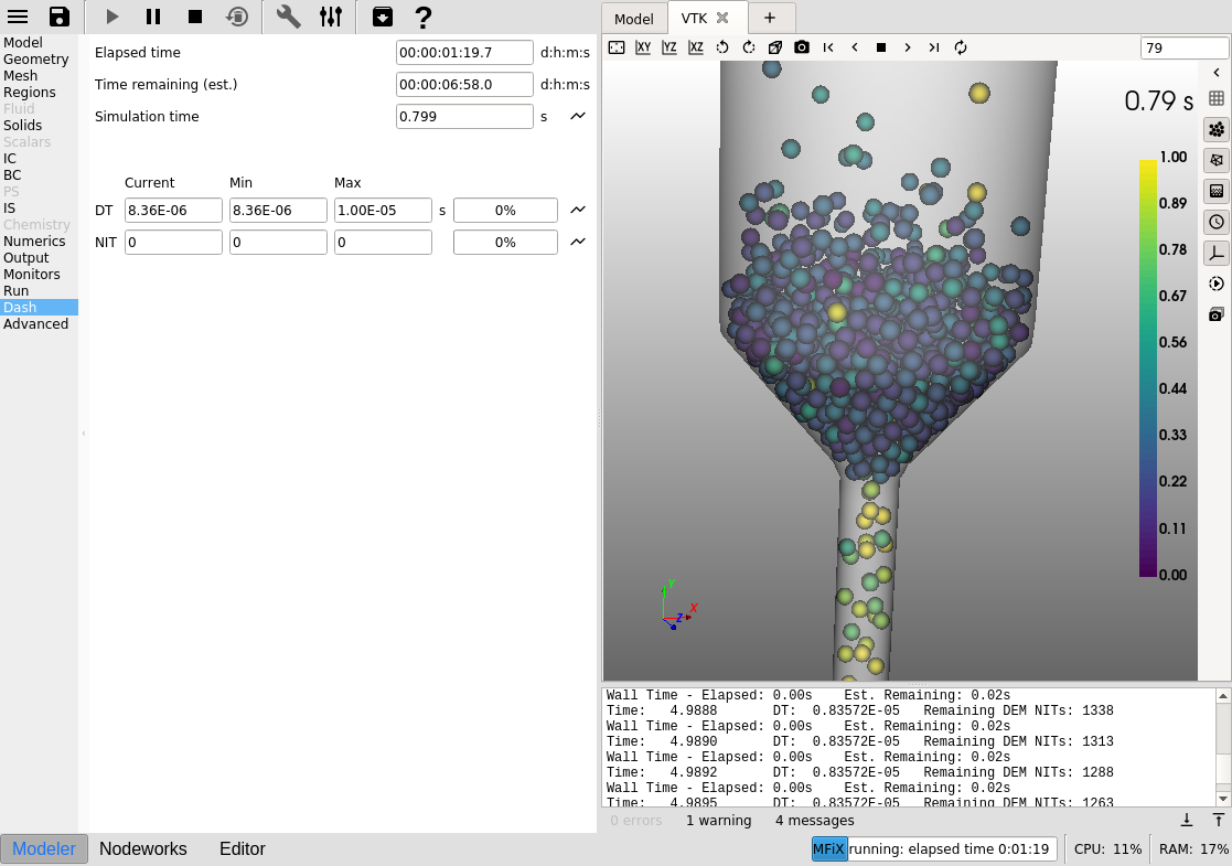 Modelpane, enter a descriptive text in theDescriptionfieldSelect “Discrete Element Model (MFiX-DEM)” in the