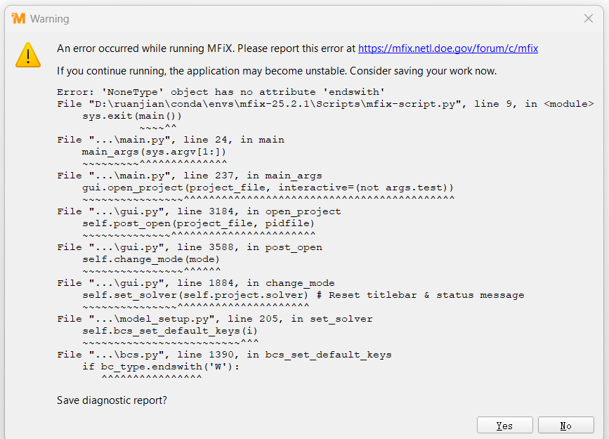 I am using MFIX 25.2.1 version. I found this error and now MFIX is not resuming it’s working due to attached error. Can anyone address this issue?