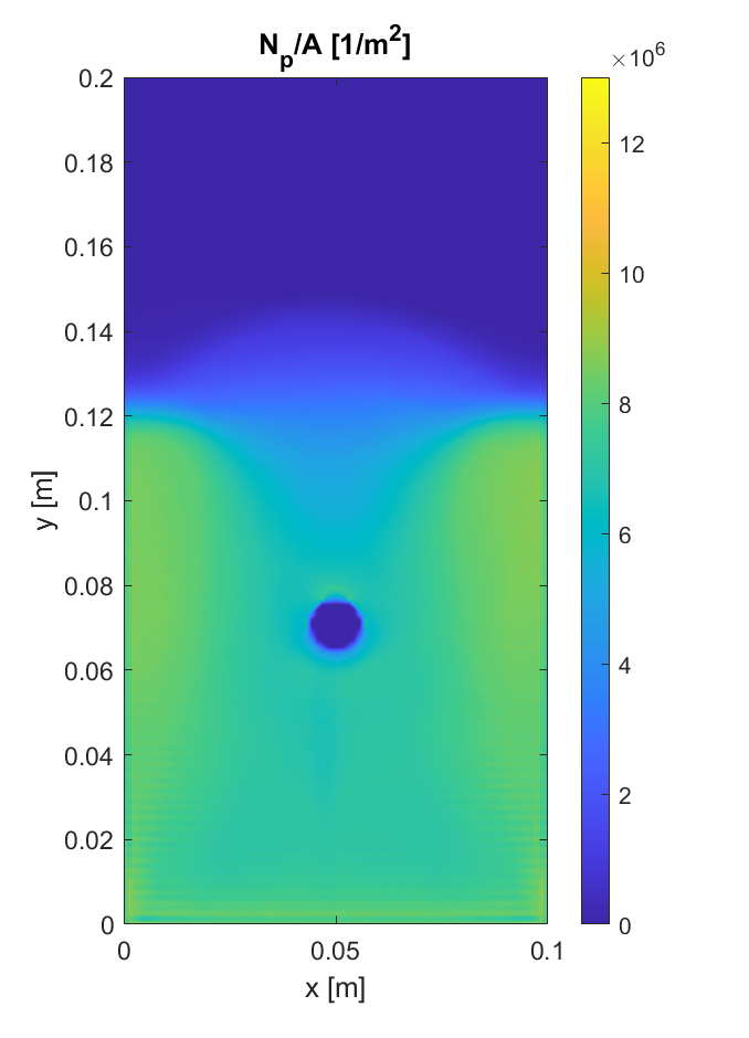 Yes, Np is the total number of particles that visit that cell over the simulation. I am aware it is not a proper variable to monitor, as it depends on the number of exporting steps and the area of the cells, but it serves to show some results.