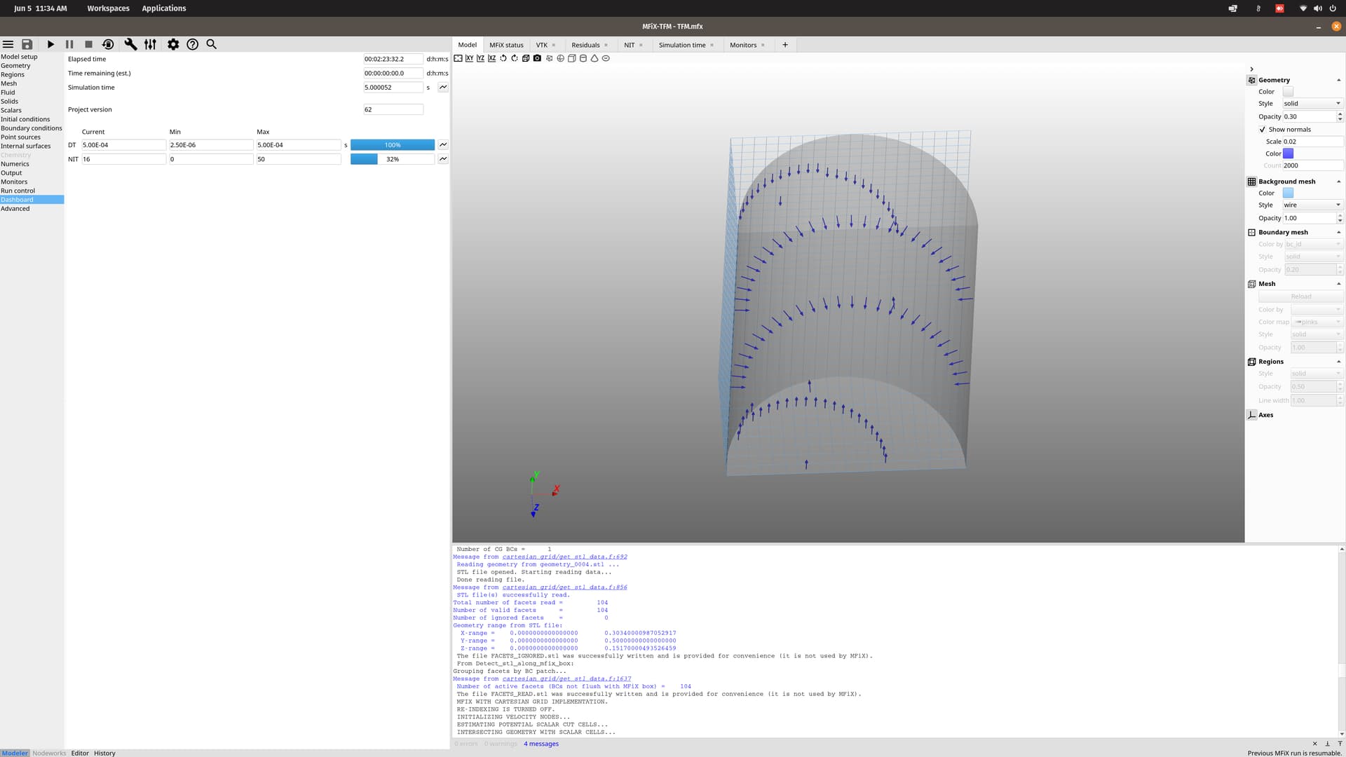 - Your STL file is closed a the top and bottom, which conflicts with the inlet and outlet. My recommendation if you have a cylinder is to use the procedural STL geometry from the GUI. The attached setup is using procedural STL geometry. The cylinder has no cap at the top and bottom, and extend past the top and bottom planes to get a cleaner intersection with the background grid.
