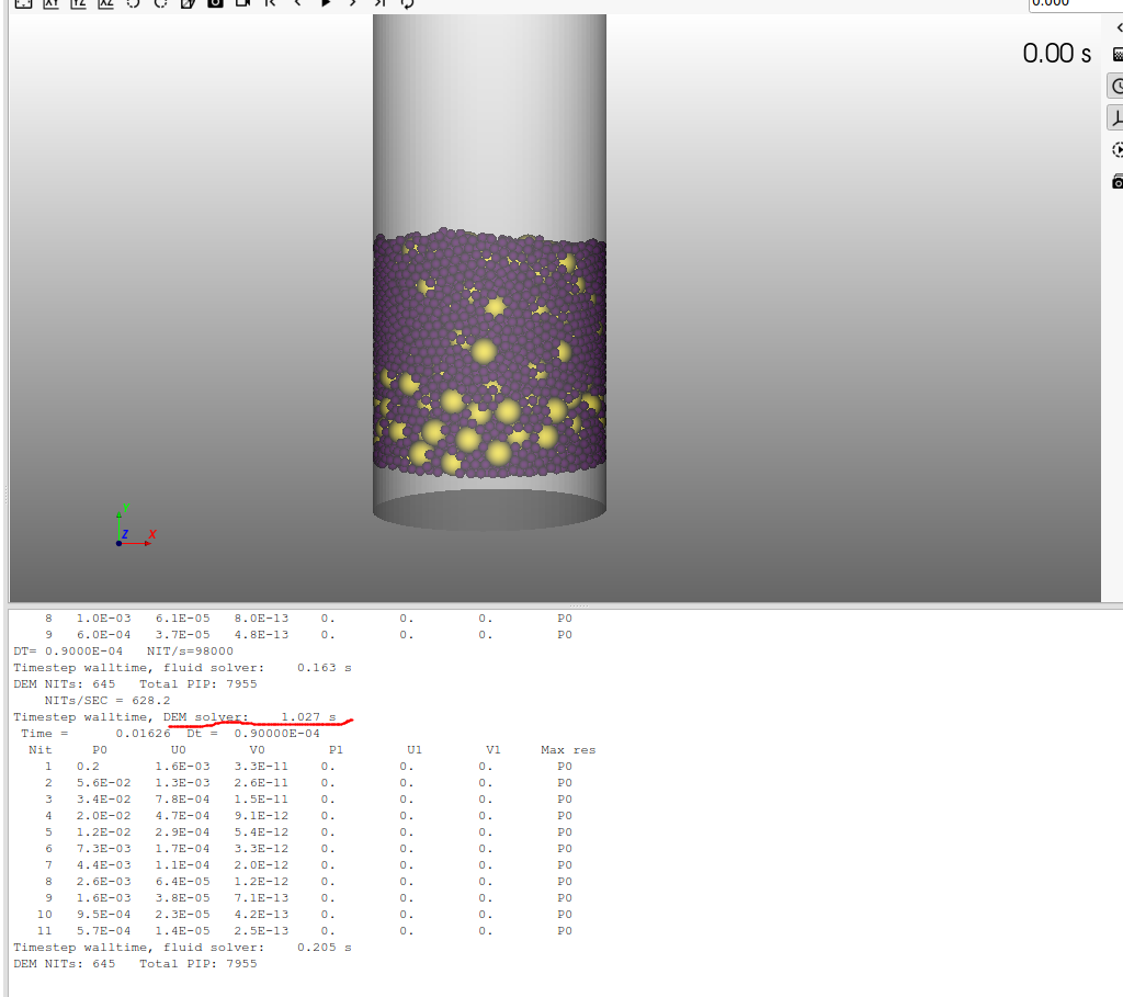 When I run the simulation, DEM solver time increases from 0.5-0.6 s to 7s-8s after few hours. Why is there no visible bubbling on the top surface or any movement at the core even at high velocities. I am attaching herewith the .mfx file. Could someone please guide me on this? Thanks in advance.