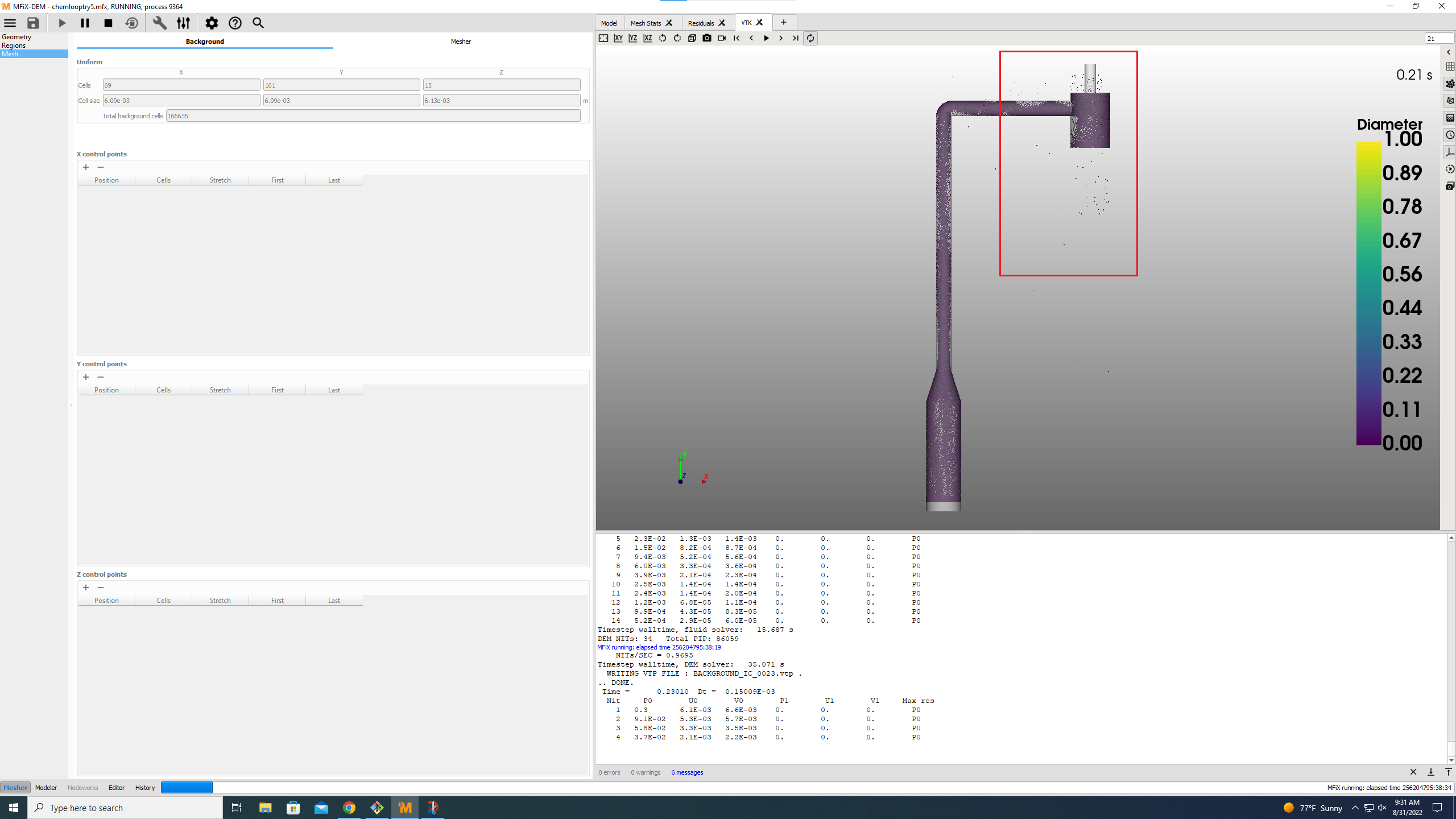 I would increase a lot more, say 10 or 100 times larger. If it takes a long time for the particles to reach the top of the riser, put some particles near the bend and cyclone and see if they still leak.