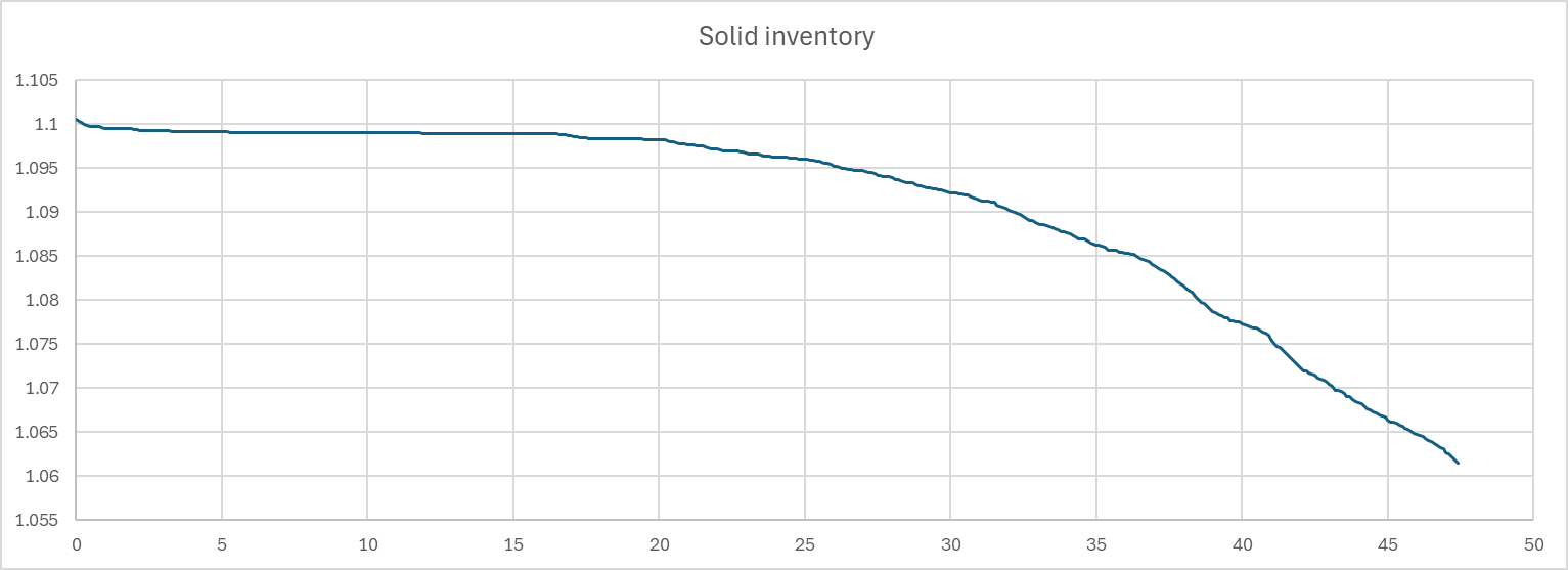 Running fine fractions with PIC often yields this “still not cool” message, which I understand means that parcels/particles are removed from the system. This is also visible in the inventory plot below. I have so far tried to reduce the timestep and statistical weight, without any luck. The message still appears when trying with uniform and larger particle sizes (within the original PSD).