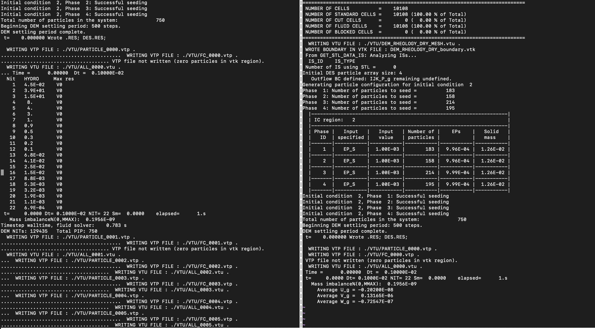 Ok maybe perfectly is the wrong word. this significantly alters what is written to *LOG. I can no longer see the progress of the simulation, i.e., fluid and dem number of iterations, solver wall times, etc. Currently looking into how to recover what I would consider ‘normal’ behavior.
