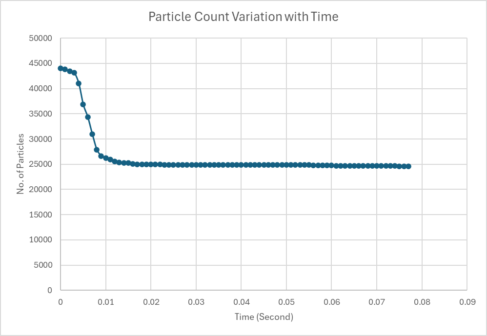 I am simulating the Ellipta Inhaler as in the attached paper. Simulation has been going well. DEM. However, it seems like the particles are not moving much after 0.02 seconds as you can see in the plot. I am using all the friction values and Hamaker constant as given in the paper. I am attaching the Zipped file (with everything) and some movie files on velocity and particles.