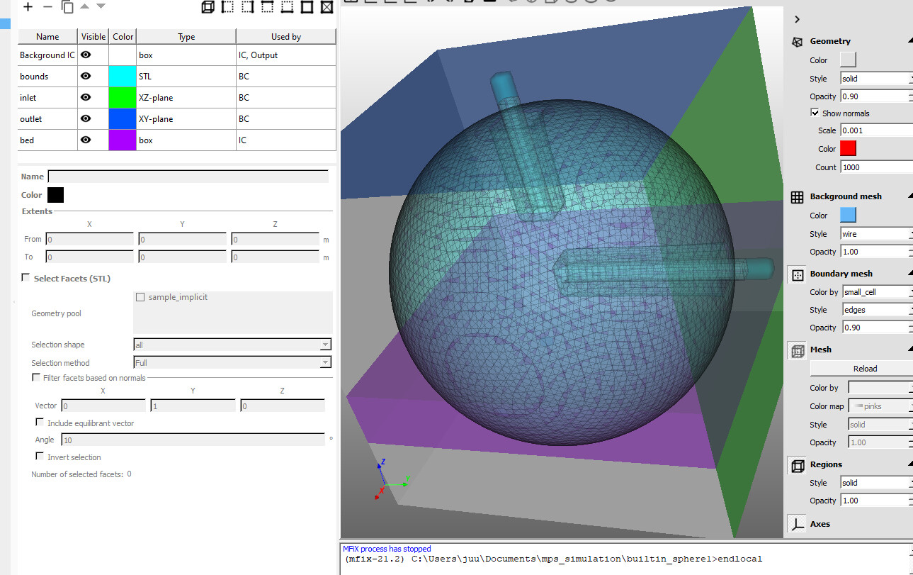 Another phenomenon is that though I have set up the initial volume fraction of particles in some regions, they are not visualized at the very beginning as the same as that of other tutorial examples with similar configuration and simulation method. I would quite appreciate if you could help me check my .mfx file, and indicate its potential errors if they were not bugs. Thank you.
