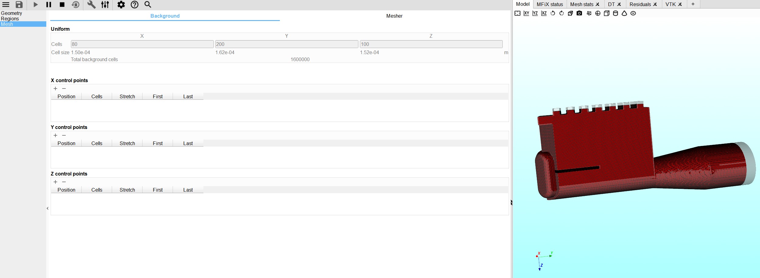 I have set up a model to simulate single phase flow of air through the Ellipta Inhaler. I am following the attached paper. The model starts running but after sometime blows up. I have attached the Zipped file, the warning message, the error message and the stl file. I also get a vtk error message when starting. The mesh I am using is 80x120x80.