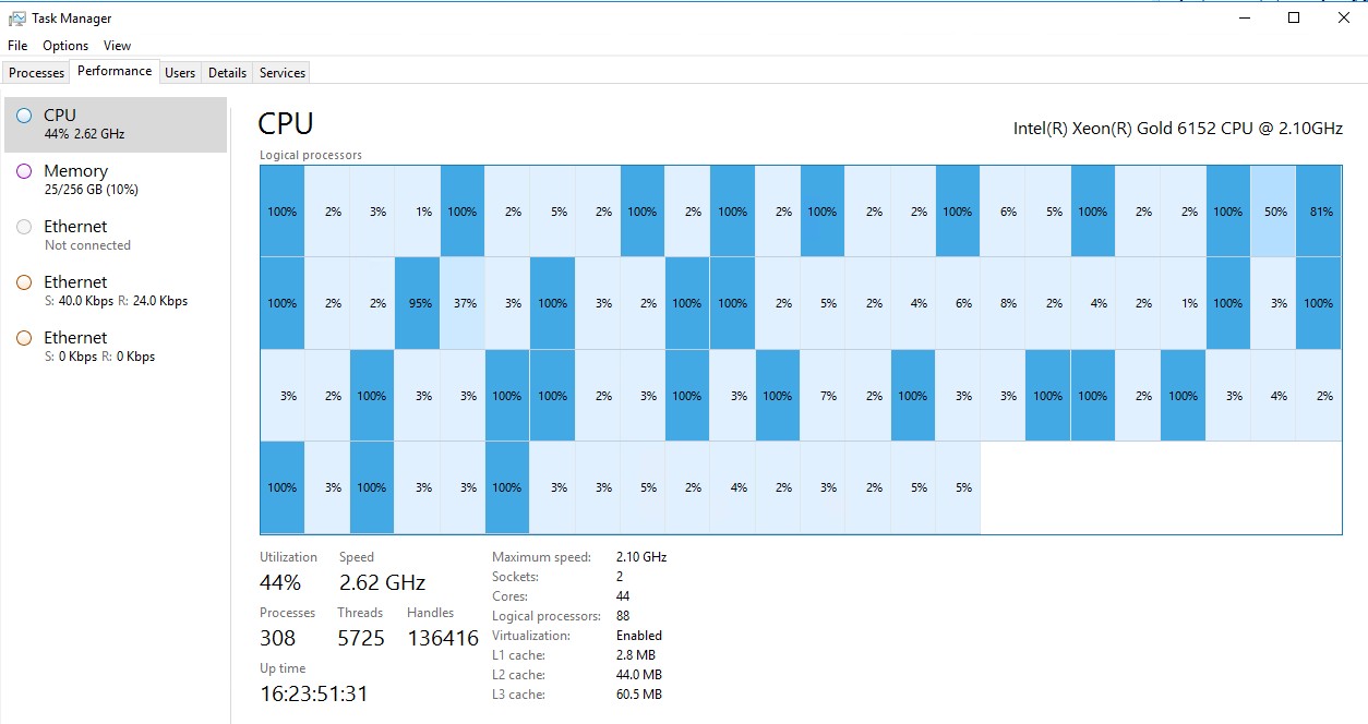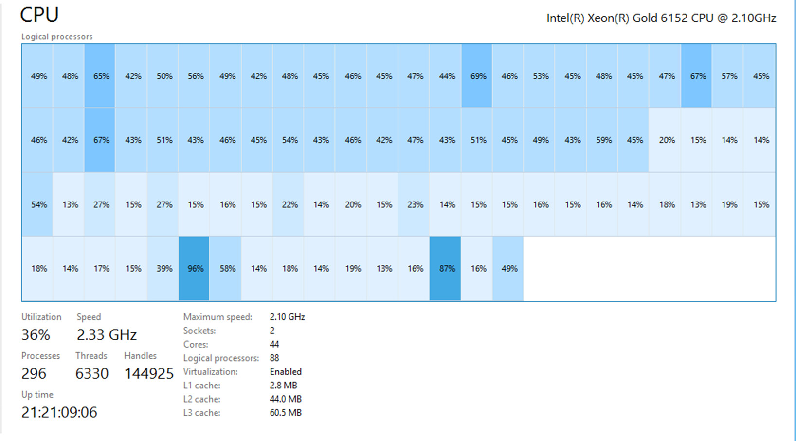 As you can see from the attached figure, it is using 88 processors but the load balancing is not good.