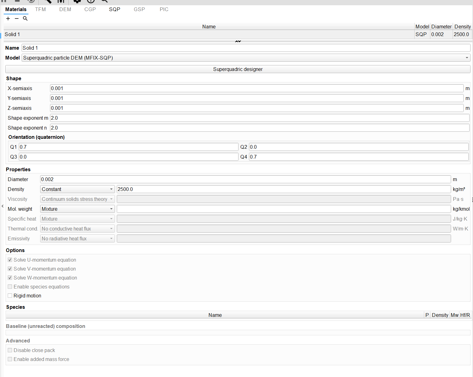 Did you use the superquadric designer when you changed the particle shape? If you didn’t, you also need to recompute the diameter (this is the bounding sphere diameter), which is not straight forward. It is better to use the superquadric designer to make sure all inputs are consistent.