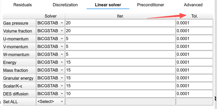 Unfortunately the covergence criteria in the Numerics pane are for the fluid and DEM solvers. The convergence criteria for the SQP contact detection algorithm are not adjustible as of now. (I’ll see about adding this to a future release). The SQP code uses its own GMRES implementation in the file sq_gmres.f and the convergence criteria are all hard-coded there.