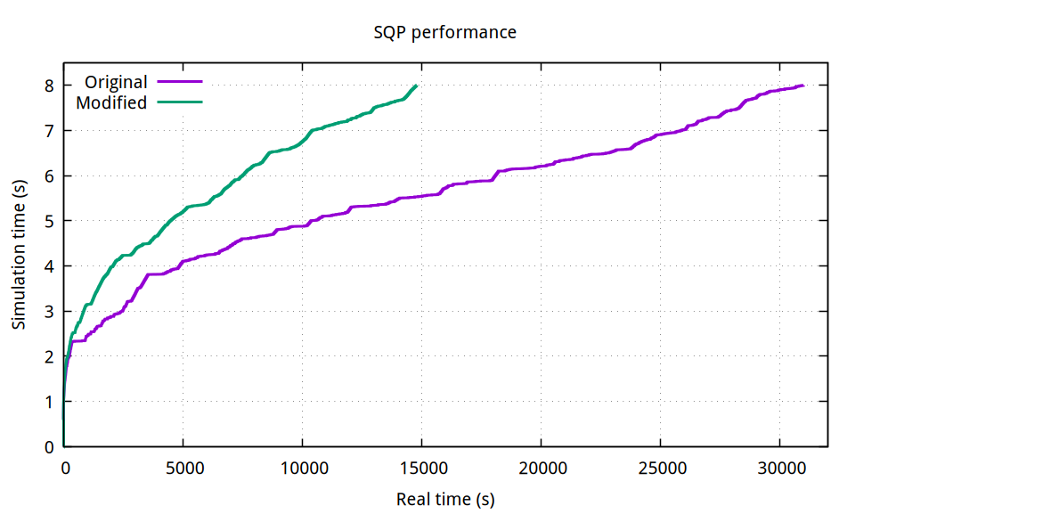 Hello, everyone. I’m running a simple SQP simulation of particles settling from the top. However, I’ve noticed that as time progresses, the process sometimes gets stuck at a particular time step for a long time, causing the particle settling process to become extremely slow. Is there any way to resolve this?