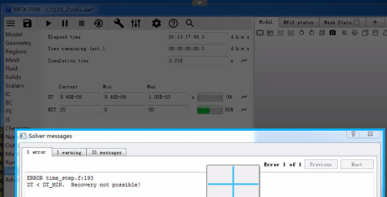 t= 4.7082 Dt= 0.1045E-06 NIT= 30MbErr%= 0.5940E-13: Run diverged/stalledERROR time_step.f:193