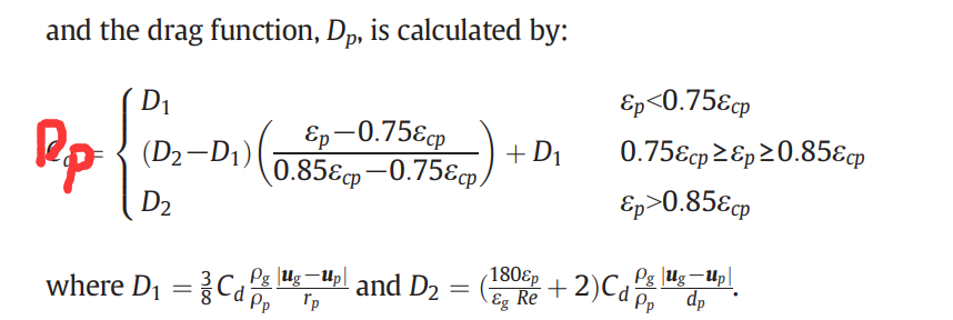 Continue with the previous topic. For CFD-DEM OR MP-PIC simulation, in the code of user-defined drag model, should we divide the drag coefficient by the variable EP_SM in order to avoid adapting the original code? I found that for MFIX-DEM simulation, modification of drag coefficient for single particle has been coded in MFIX. Therefore, it is unnecessary to do that operation additionally, is it right? However, the variable V(i) in the modification seems redundant, because it does not appear in some momentum equations, such as MP-PIC momentum equation of parcel, as shown below. So, How should we code our DEM/PIC drag model correctly? Do we need to divide the drag coefficient by the variable V(i) in the code of drag model? I am confused about this point.
