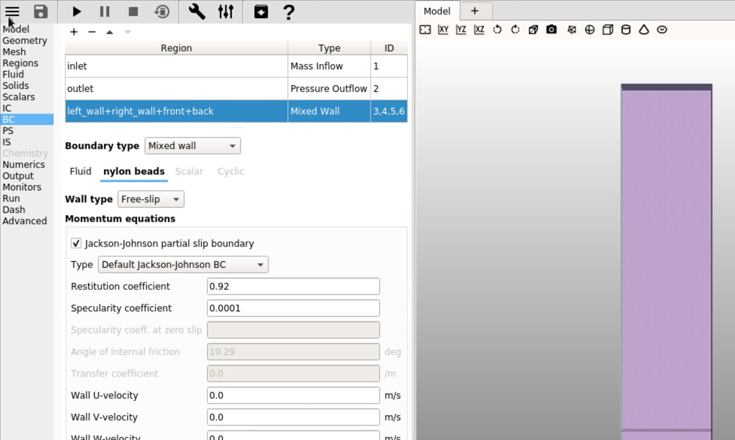 I am setting NSW boundary condition for the gas phase and JJ PSW for the solid phase in GUI. The wall BC part of the *.mfx file is as follows.